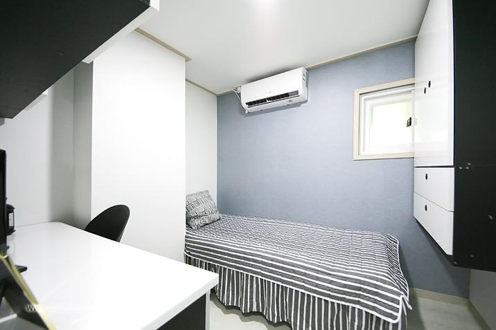 각방 편안한 침대, LED TV 모니터, 책상, 의자, 옷장, 서랍장 등 풀옵션